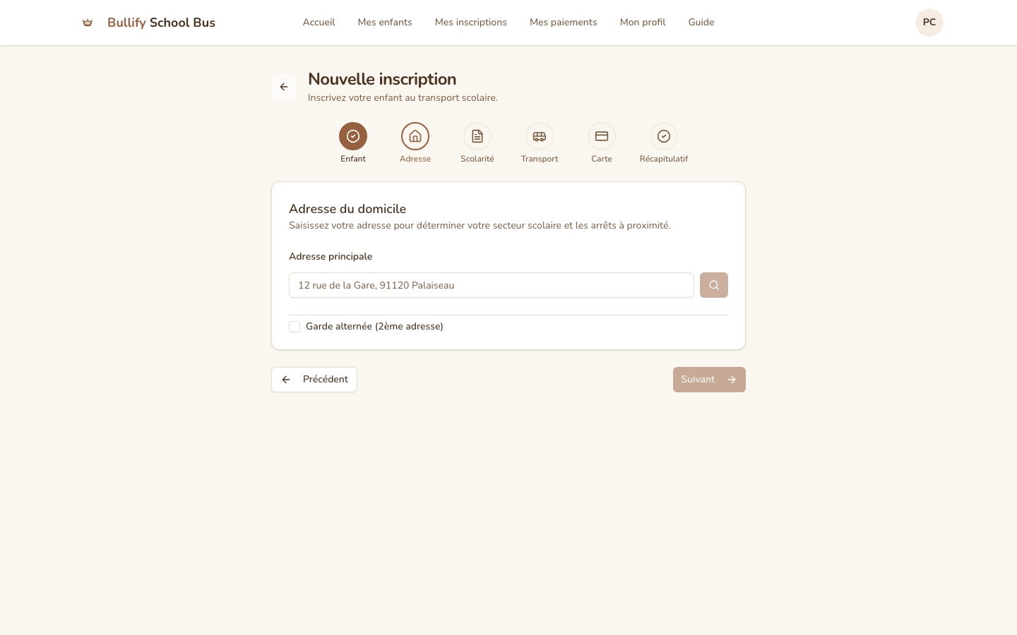 Cochez « Garde alternée » pour renseigner une seconde adresse avec un arrêt différent
