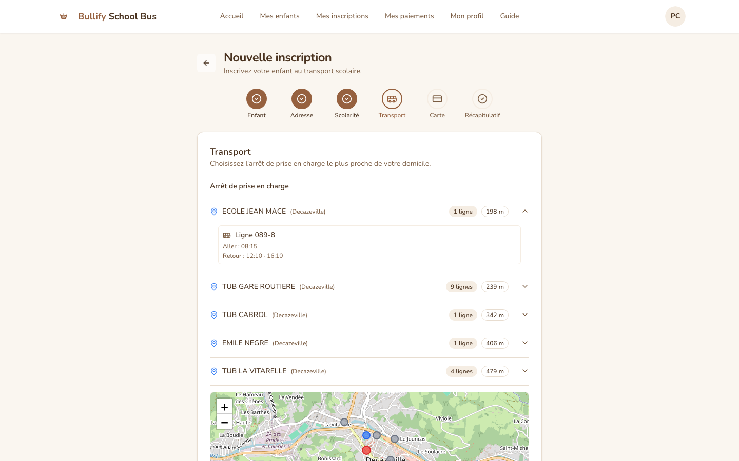 On vous propose automatiquement les arrêts desservant votre école depuis chez vous