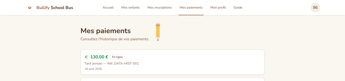L'onglet « Mes paiements » — disponible une fois le dossier validé